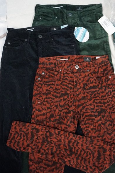 This 13pc Womens AG Adriano Goldschmied Pants OVERSTOCKS #30535H (X-5-6) lot features a curated mix of mostly velvet-style pants, along with a few additional designs. Known for their exceptional fit and craftsmanship, AG Adriano Goldschmied pants are a wardrobe staple for those who appreciate both comfort and style.