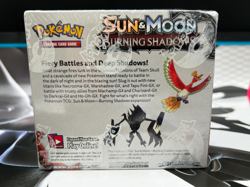 The Burning Shadows Booster Box brings the excitement of the Sun & Moon series to collectors and players who appreciate classic Pokémon TCG sets. Known for its vibrant artwork and the chance to pull powerful cards like Charizard-GX, this set captures both nostalgia and competitive energy in every pack.