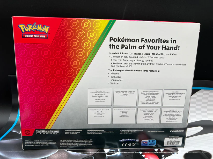 The Costco Pokémon Scarlet & Violet 151 Mini Tin 5-Pack offers a collectible experience that combines nostalgia and excitement for Pokémon fans. Each set contains five factory-sealed mini tins featuring characters from the Scarlet & Violet 151 expansion. Because this collection is randomly assorted, each box offers the thrill of discovery with every unboxing.